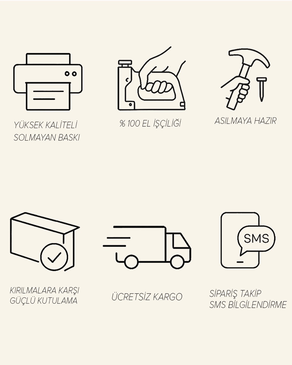 📸 Her ürün, birebir fotoğrafıyla uyumludur. Renk tonu, ölçü ve çerçeve yapısı, sipariş ettiğiniz şekilde size ulaşır.